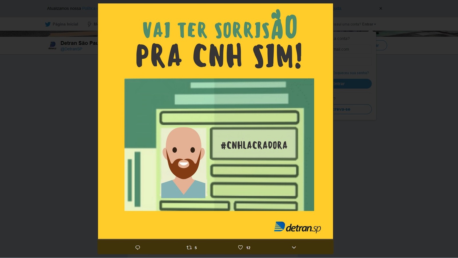 Em São Paulo, o Departamento Estadual de Trânsito (Detran) divulgou nesta semana um post no Twitter em que afirma que o sorriso está liberado. “Você pode sorrir pra foto da CNH sim”, diz o tweet. O órgão fez, inclusive, uma ilustração com imagem semelhante à do fotógrafo Filipe Borges.
